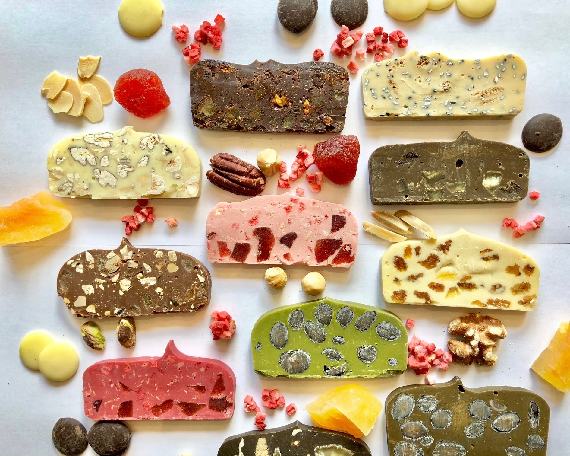 QUONチョコレートの代名詞『QUONテリーヌ』は、世界のカカオと日本の食材をマリアージュ。ナッツやフルーツ等が入ったチョコレートで食感をお楽しみください。